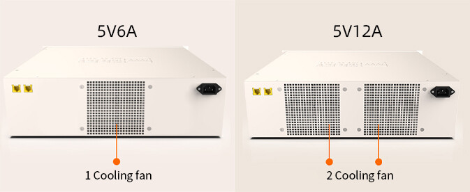 5V6A는 1개의 팬을 사용하지만 5V12A는 2개의 팬을 사용합니다.